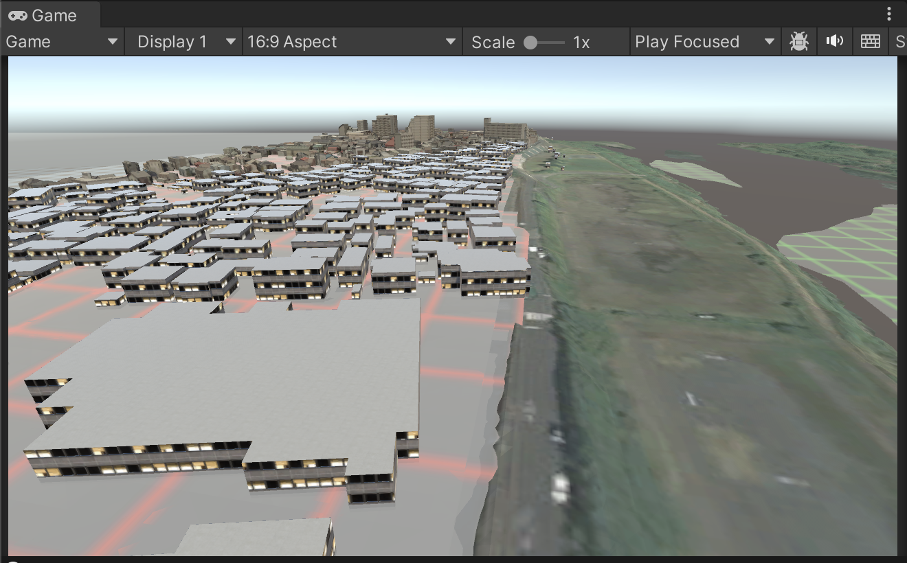 近隣で厚木市のデータをインポートしましたが、データサイズが巨大で狭い区画指定じゃないと、Unityがハングしてしまいます