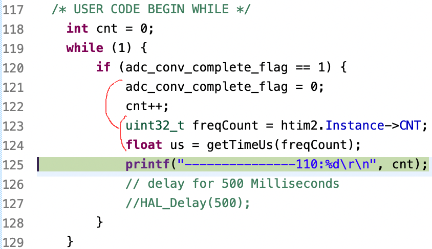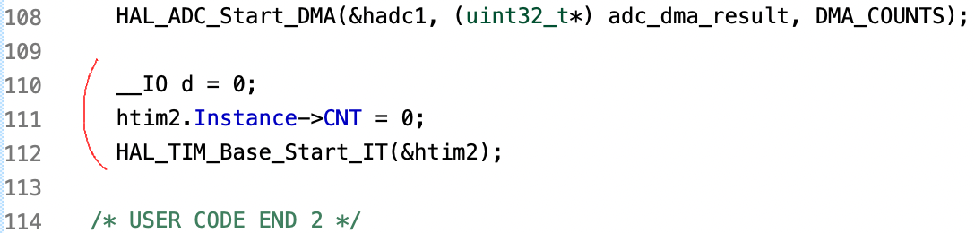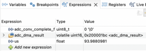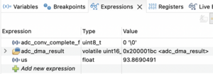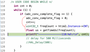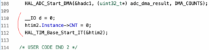 の記事のコードに追加してADCのDMA転送の時間を測定してみました