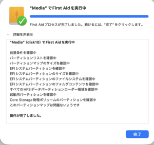 媒体チェックはMacのFirst Aidでは今時点は問題なし、